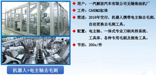 4 主要配置:工業(yè)機(jī)器人、電主軸、刀具系統(tǒng)、控制系統(tǒng)、浮動機(jī)構(gòu)。
